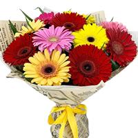 | Состав | 9 гербер, 10 хризантем, крафт, лента |