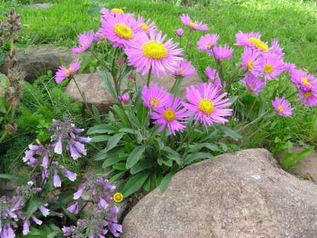 Альпийская Астра хорошо уживается со всеми цветами и декоративными растениями, поэтому ее часто используют в ландшафтных композициях.